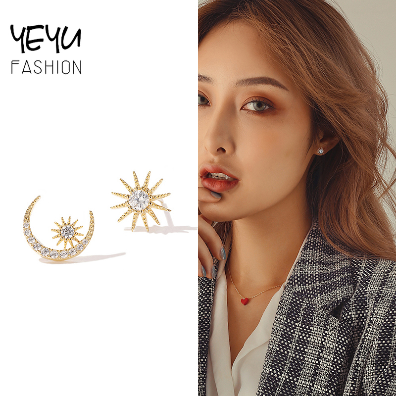 925 Agulha De Prata Coreana Dongdaemun Zircônio De Uma Peça De Da Moda Brincos De Lua De Estrela De Diamante Para Mulheres