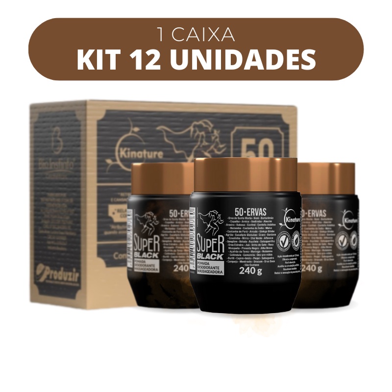Kit C/ 12 Pomada Massageadora 50 Ervas Super_Black 240g (Lançamento) Bio Instinto
