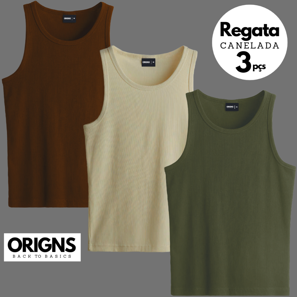 kit com 3 Regatas Masculina Americana Canelada Algodão e Elastano