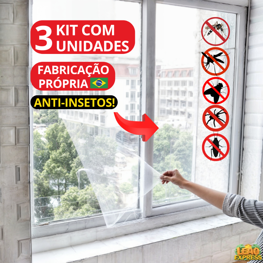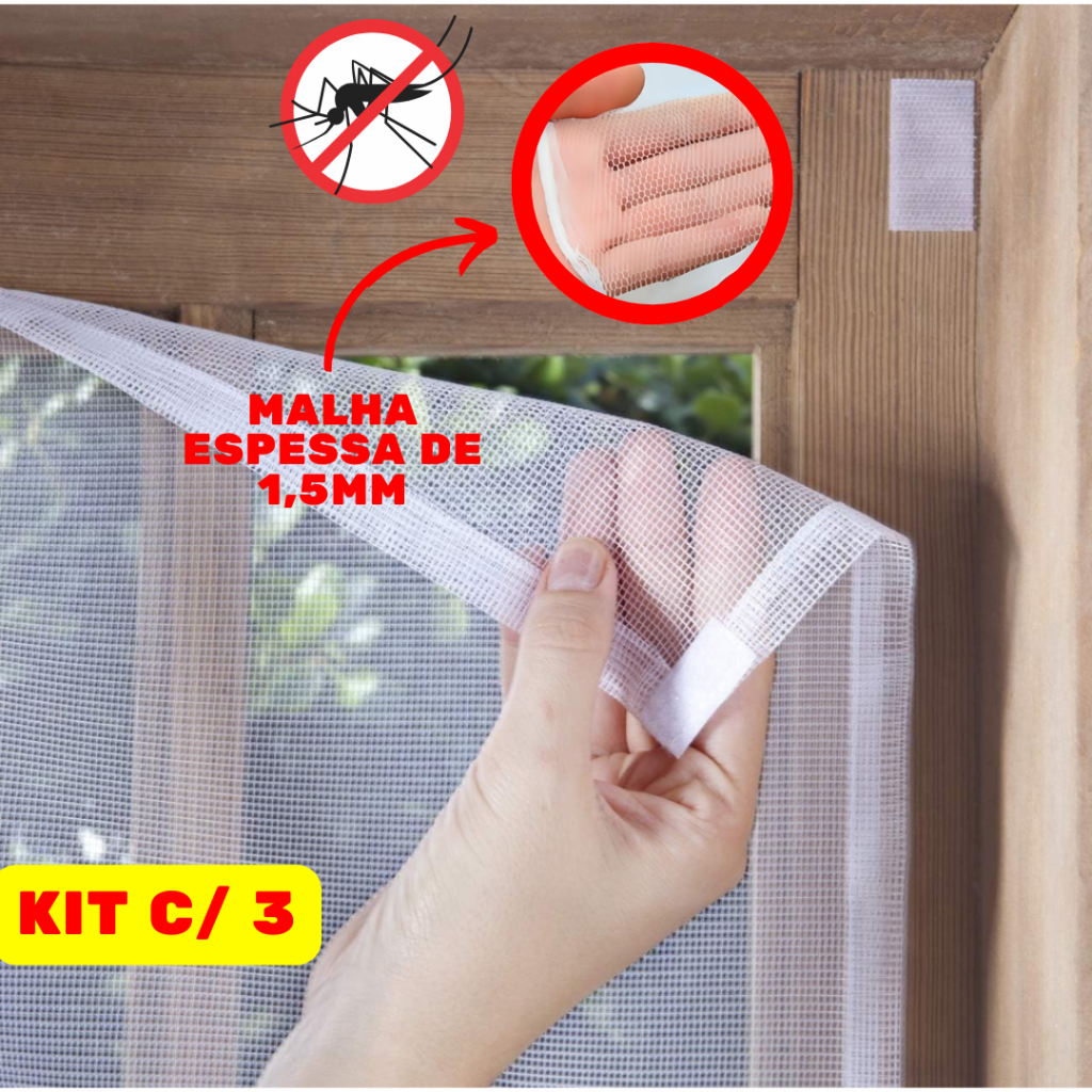 Kit 3 Tela Mosquiteira Janela Velcro Ajustável Anti Insetos
