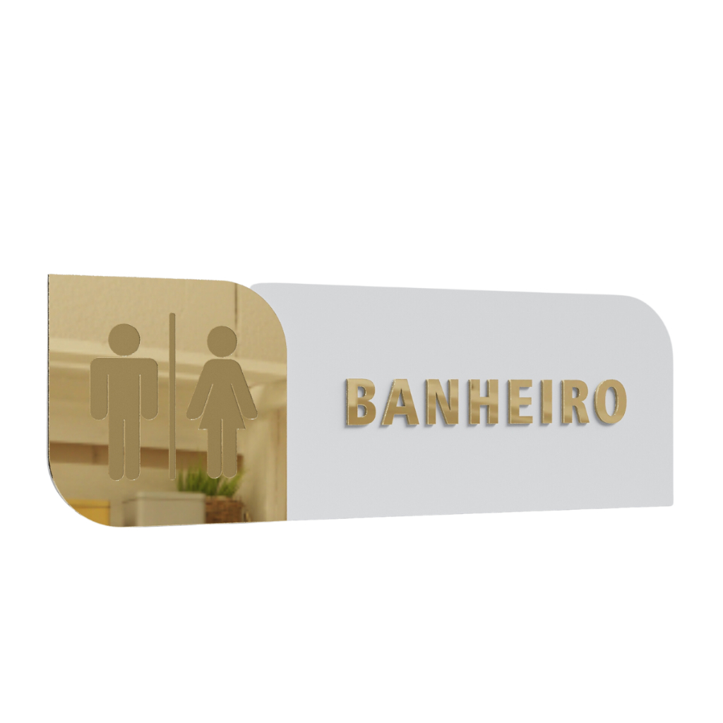 Placa Sinalização de Porta Salas Setores Banheiro MDF com Acrilico espelhado Personalizada Linda Banheiro Logo