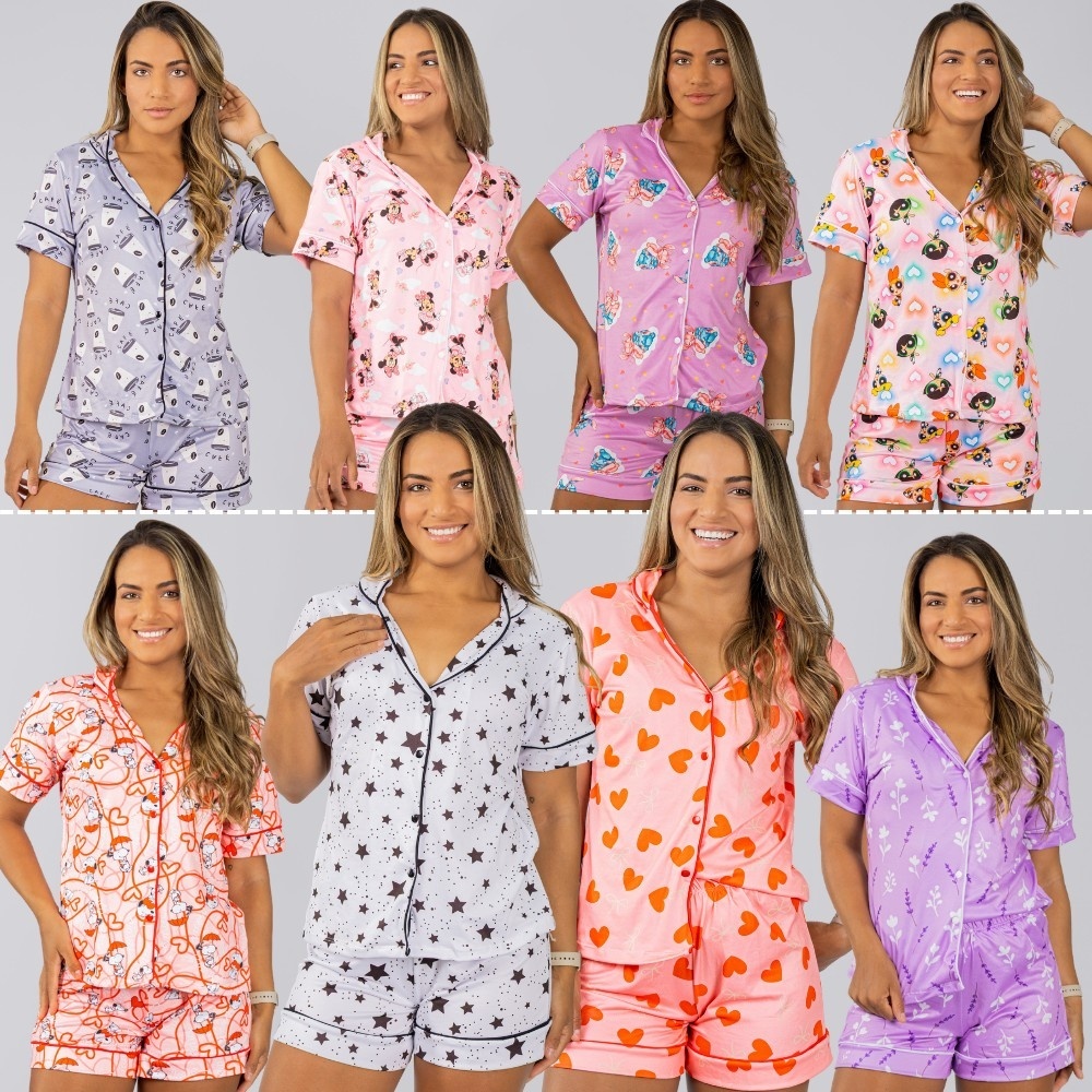 KIT 2 Pijamas Curto Americano Blogueira Aberto Botão Amamentação Feminino Baby Doll Blogueirinha Promoção