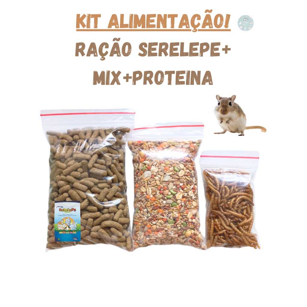 Kit Alimentação Roedores, Ração serelepe + Mix sementes e grãos + Proteina Tenébrio desidratato.