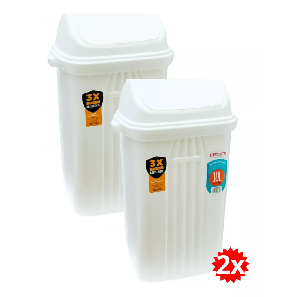 Kit 2 Lixeira Plástica Basculante Com Tampa Sanremo 10 Litros