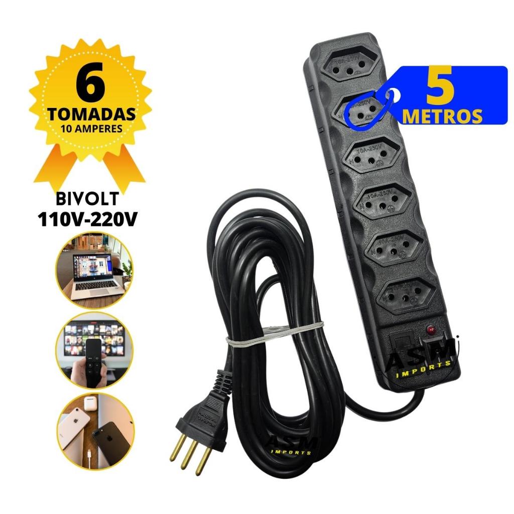 Filtro de Linha RÉGUA DE TOMADAS 6 TOMADAS tripolar 10 Amperes 3 METROS com fusível Pronta Entrega