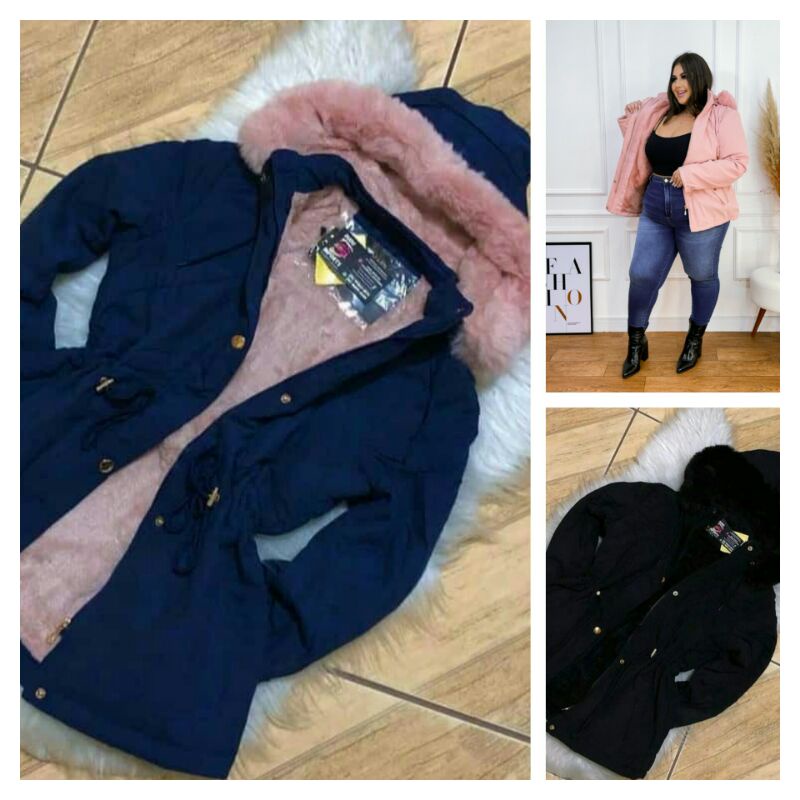 parka feminina Plus size tamanhos G1 G2 G3 G4 G5 toda peluciada por dentro com pelo no cor rosa com capus removível