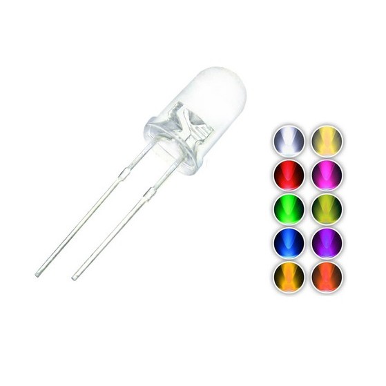 Kit 100 Peças Led Difuso 5mm Cores Variadas para Arduino Verde Amarelo Vermelho Azul Branco