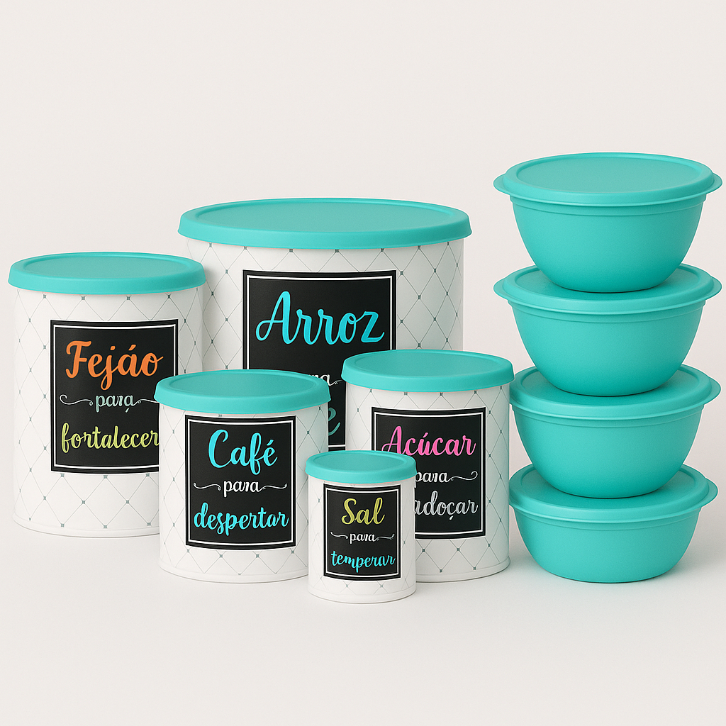 Kit potes de mantimentos para cozinha 5 peças + 4 potes redondos Boll de plástico