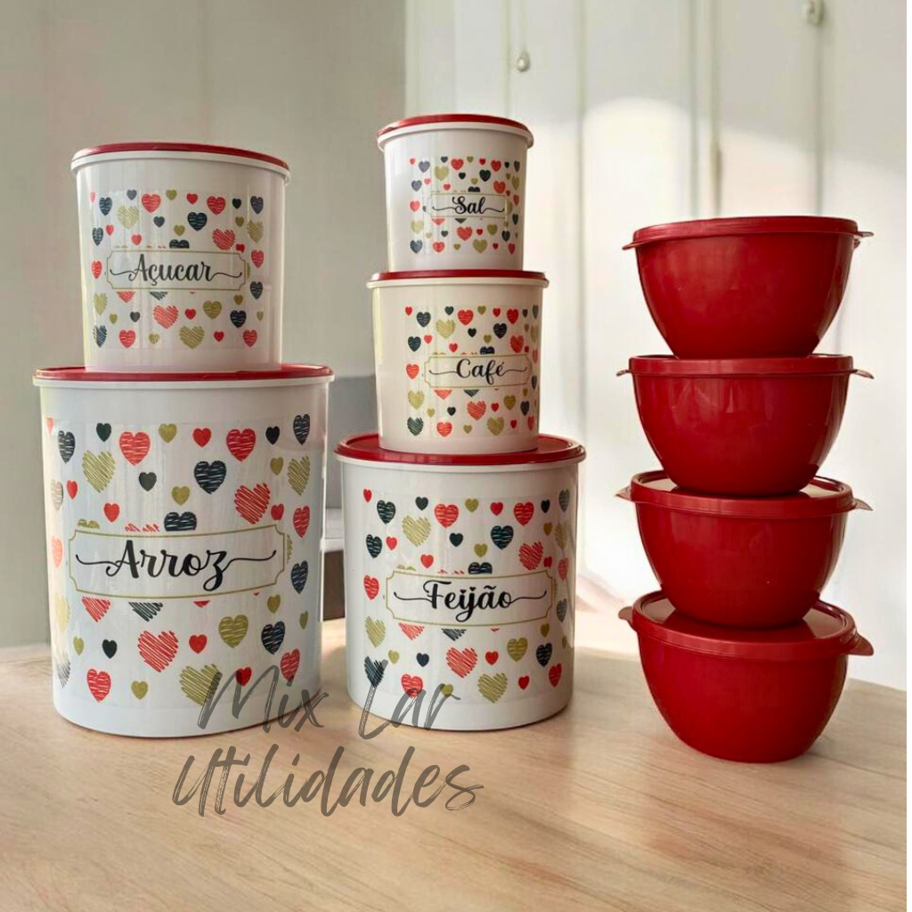 Kit de potes mantimentos cozinha com 5 peças plástico + 4 potes Boll redondos