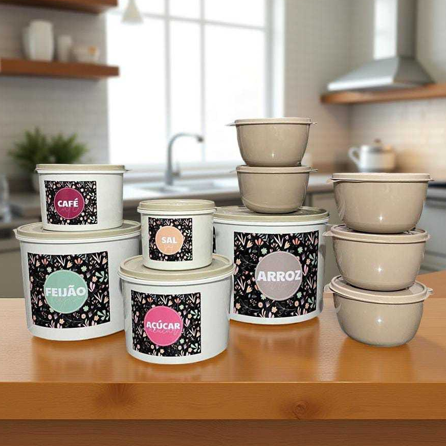 Kit potes de mantimentos para cozinha 5 peças + 4 potes redondos Boll de plástico