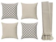 Kit Manta Para Sofá Luxo Bege Cru + 4 Capas De Almofadas Geométricas - Tmdecor