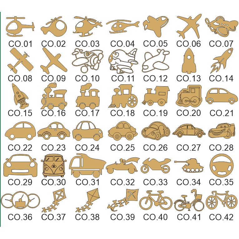 Kit 12 Peças Moldes Automóveis Carrinhos Avião Trem em MDF 3mm Cru com Caixa Infantil