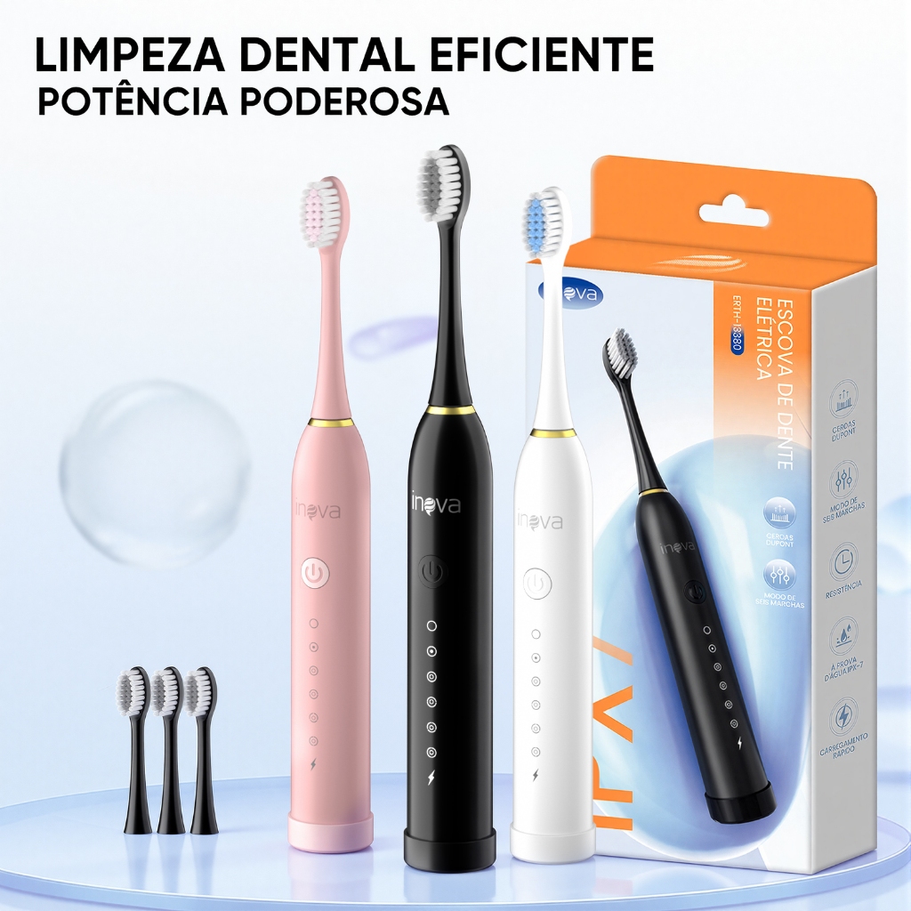 INOVA Escova De Dentes Elétrica Ultrassônica Limpeza Com 4 Cabeças Profissional Inteligente Sônica IPX7 À Prova D'água