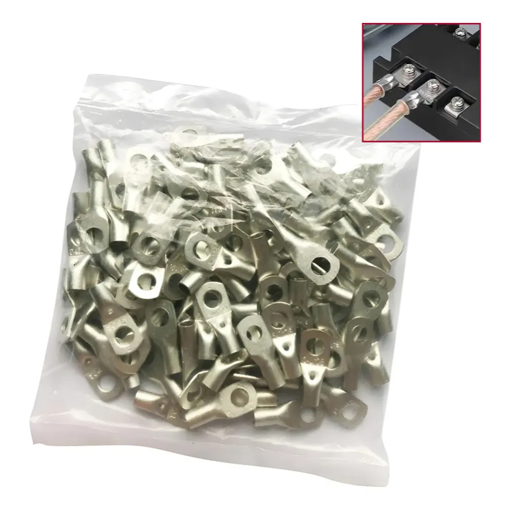 Kit 50 Terminal Olhal De Compressão Terminal Cobre 10mm ou 16mm M8 Prateado