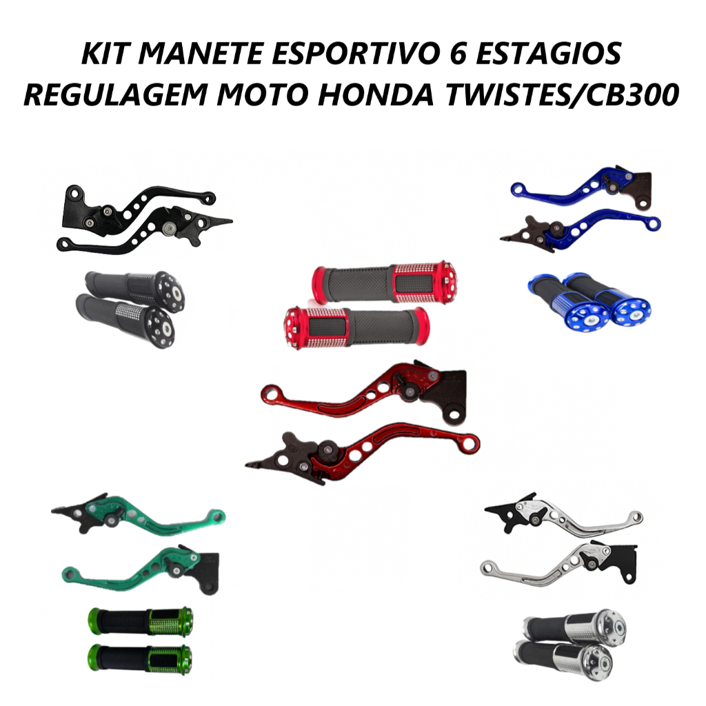 Kit Manete Manopla Esportivo Honda Twister 250 CB 300 Freio Disco Preto Vermelho Azul Cromado