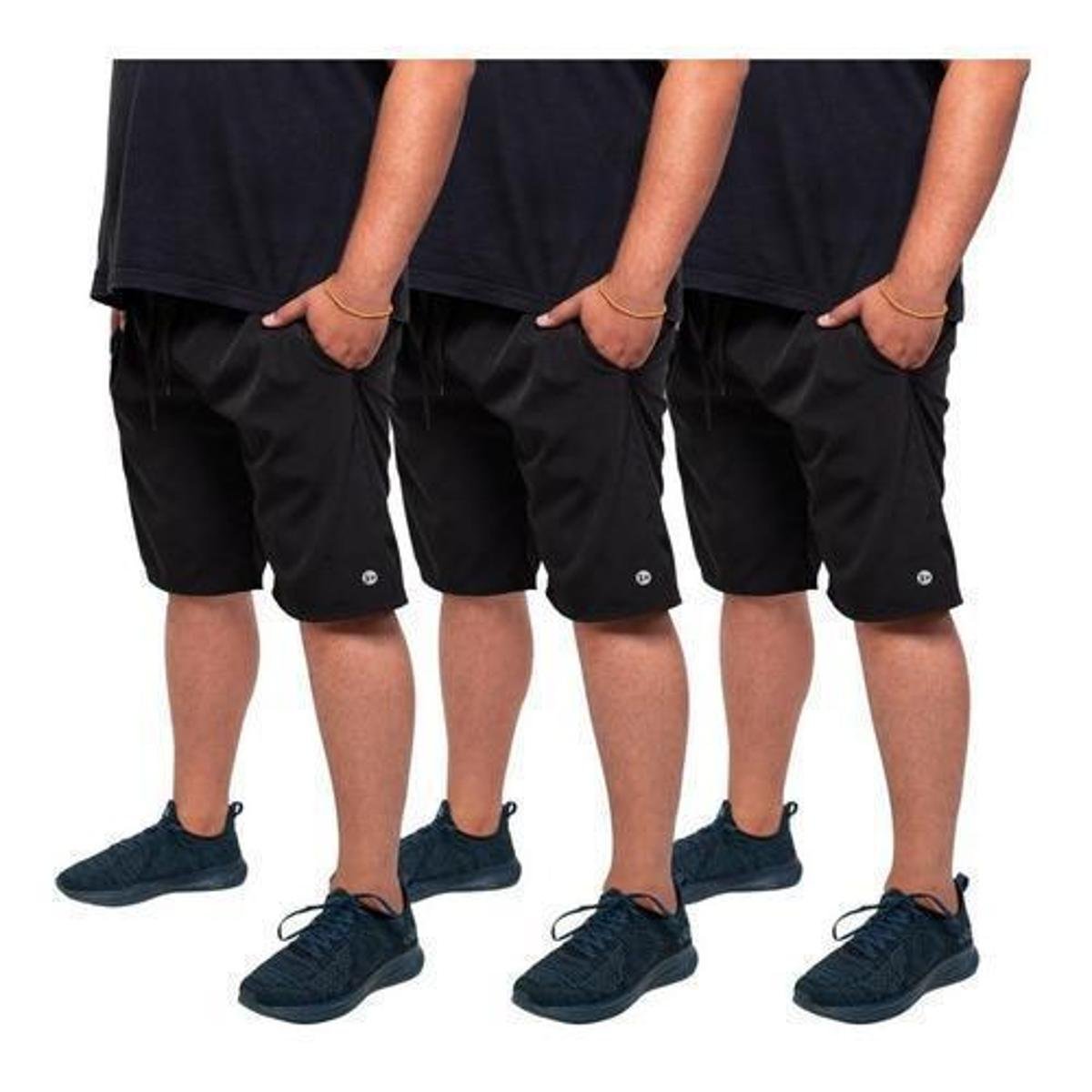Kit 3 Bermuda Elastano Plus Size P ao G3 Masculina Shorts Academia
