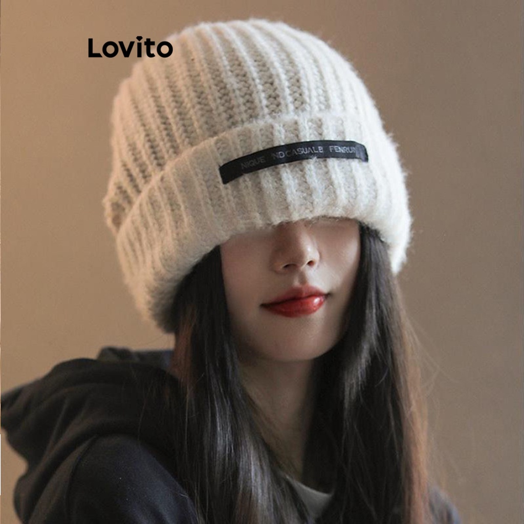 Lovito Chapéu de Inverno Quente e Amigável com Letras para Amigas para Mulheres LFA08600 (Cáqui/Marrom/Cinza/Preto)