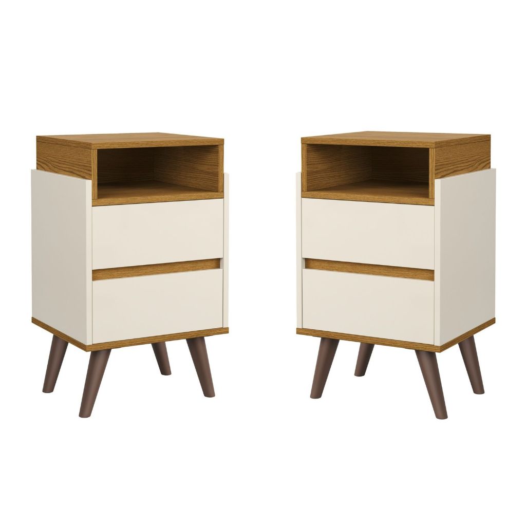Conjunto Mesa de Cabeceira Kit Mesinha Canto Quarto Lateral Cama 2 Gavetas Organizadoras Retrô Quarto - Várias Cores - Dream RPM