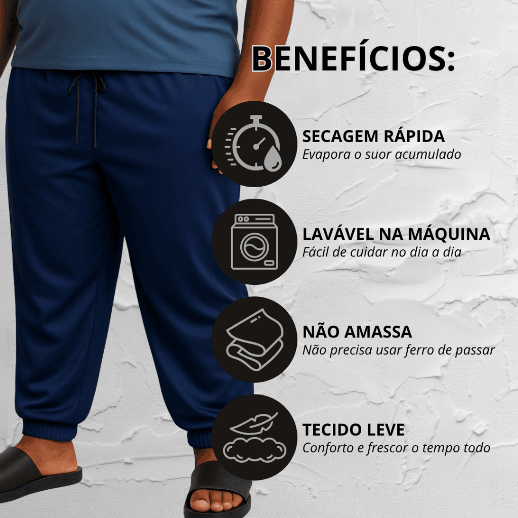Calça Dry Fit Plus Size Masculina Esportiva Tecido Leve Confortável Academia e Casual