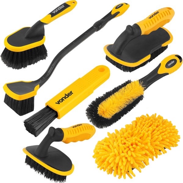 Kit De Escovas Para Limpeza Automotiva Com 7 Peças Vonder