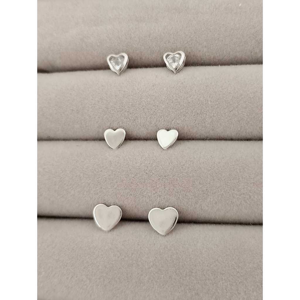 Kit Trio de Brincos Coração Liso e Zircônia de Aço Inoxidável