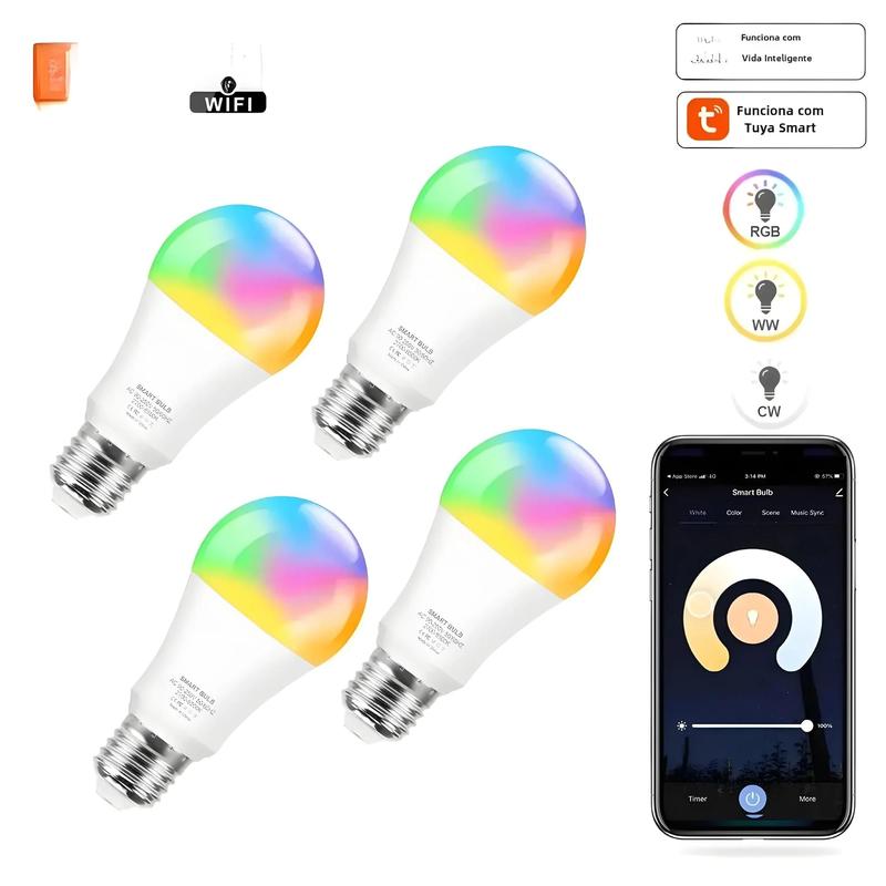 Lâmpada Inteligente LED Para Alexa , E27 , RGB , 9W , 110V , 220V , Tuya , WiFi , Bluetooth , Smart Bulbs , Google Assistant Life