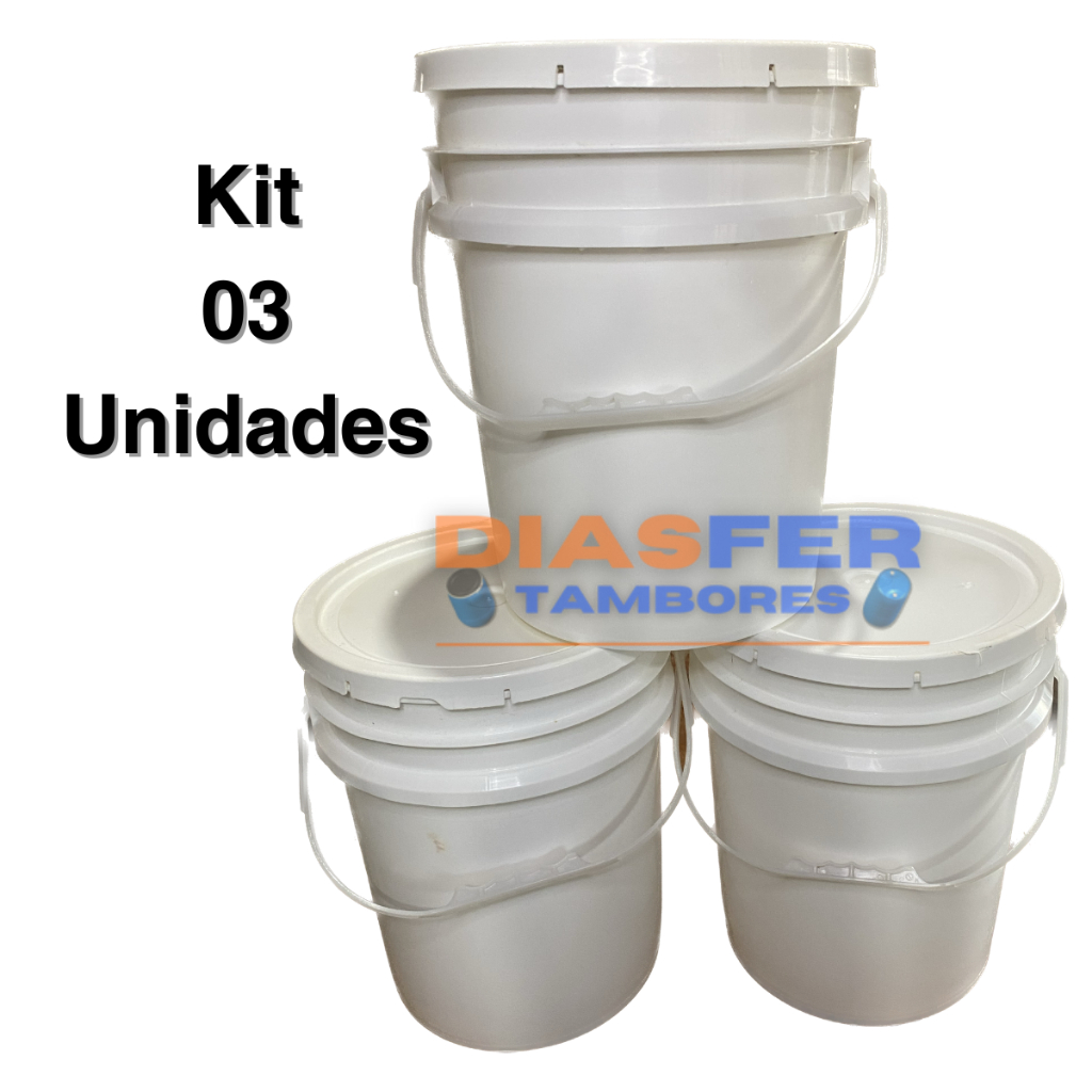 KIT 03 Balde 20 Litros Redondo com Tampa Reuso Baldes Alimenticios Atoxico Para Armazenar Comida Alimentos Ração Grãos Ferramentas Roupas Mel Milho Tampas com Travas Alças Reforçadas Mercadoria de Qualidade!