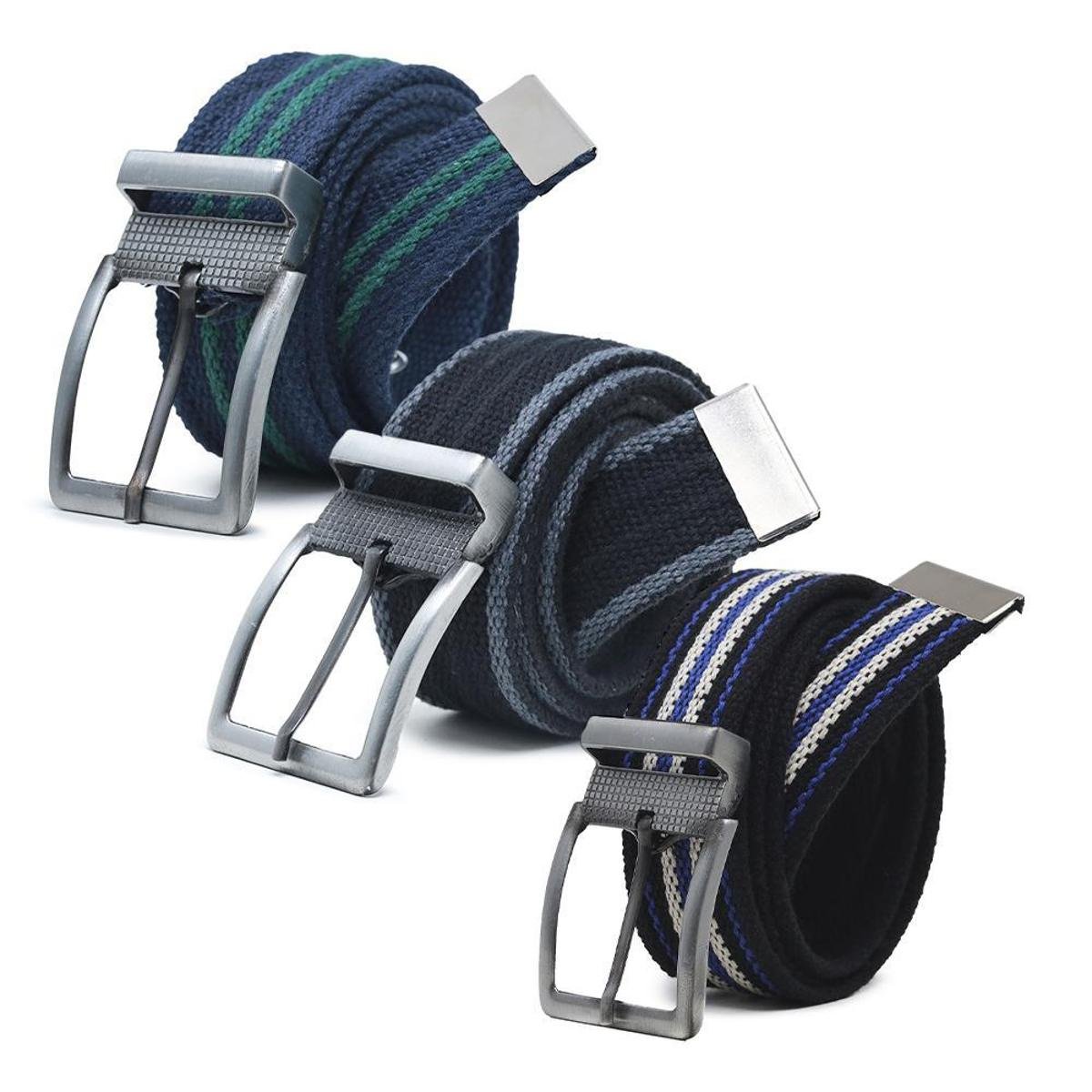 Kit 3 Cinto Masculino Gorgurao Lona Algodao Dupla Face Ajuste Fivela Com Ilhos