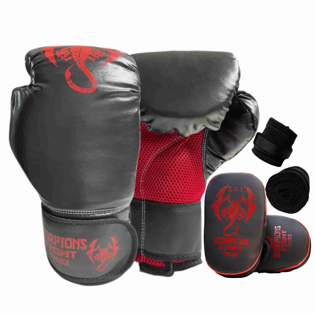 Kit Treino Caseiro Luva Boxe + Bandagem + Aparador de Soco + Sacola de Brinde | Muay Thai MMA