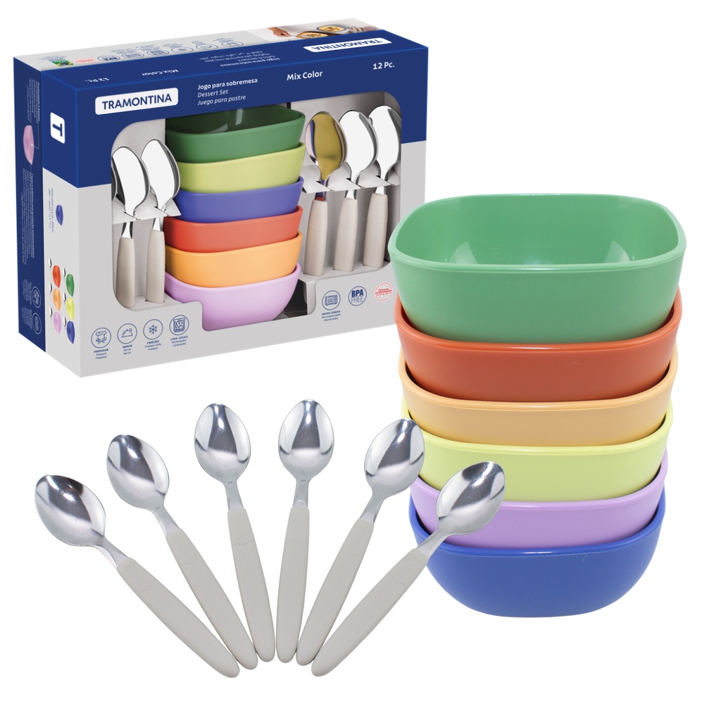 Jogo De Tigelas Bowl Tramontina 12 Peças Sobremesa Mix Color Kit Coloridos #dsb
