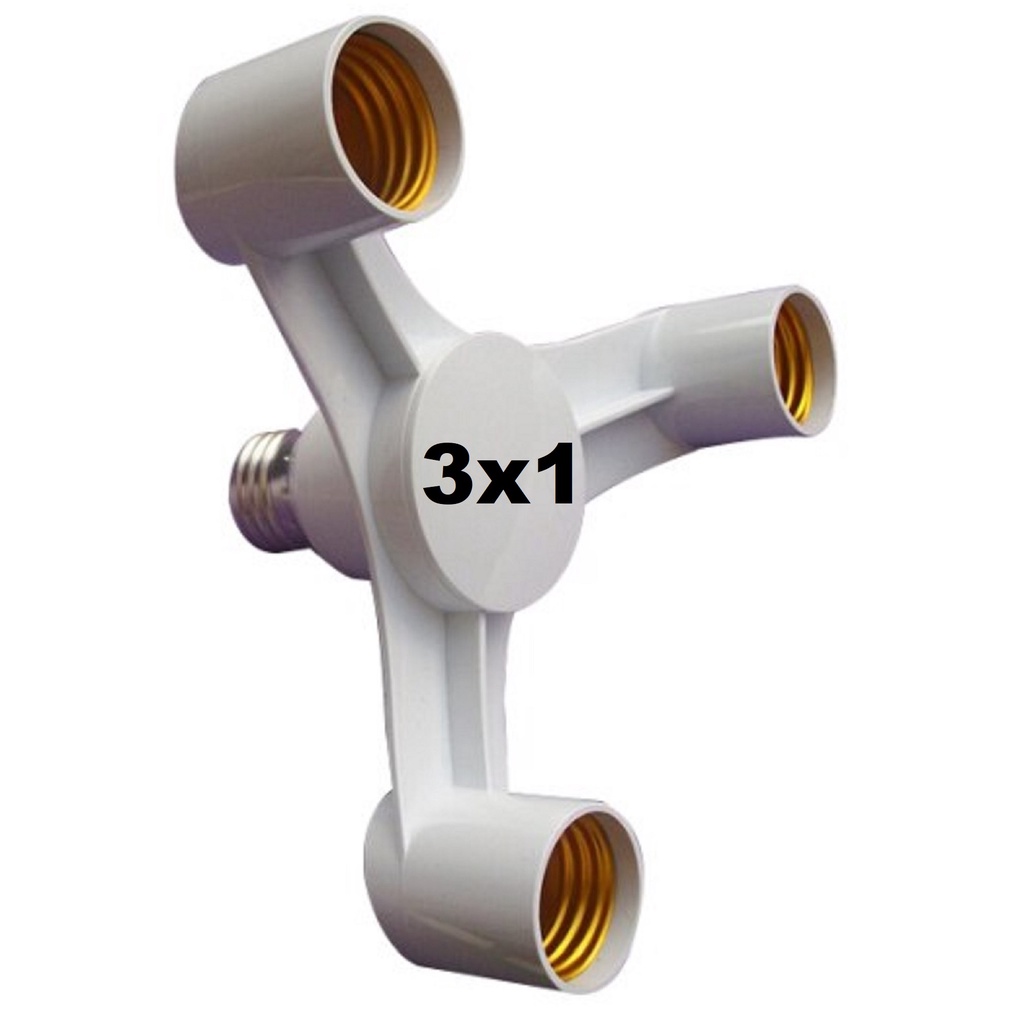 Prolongador Adaptador Extensor Soquete Bocal Lâmpada E27 - 3 Lâmpadas - 3x1 - 3 em 1 - Multiplo - Triplo