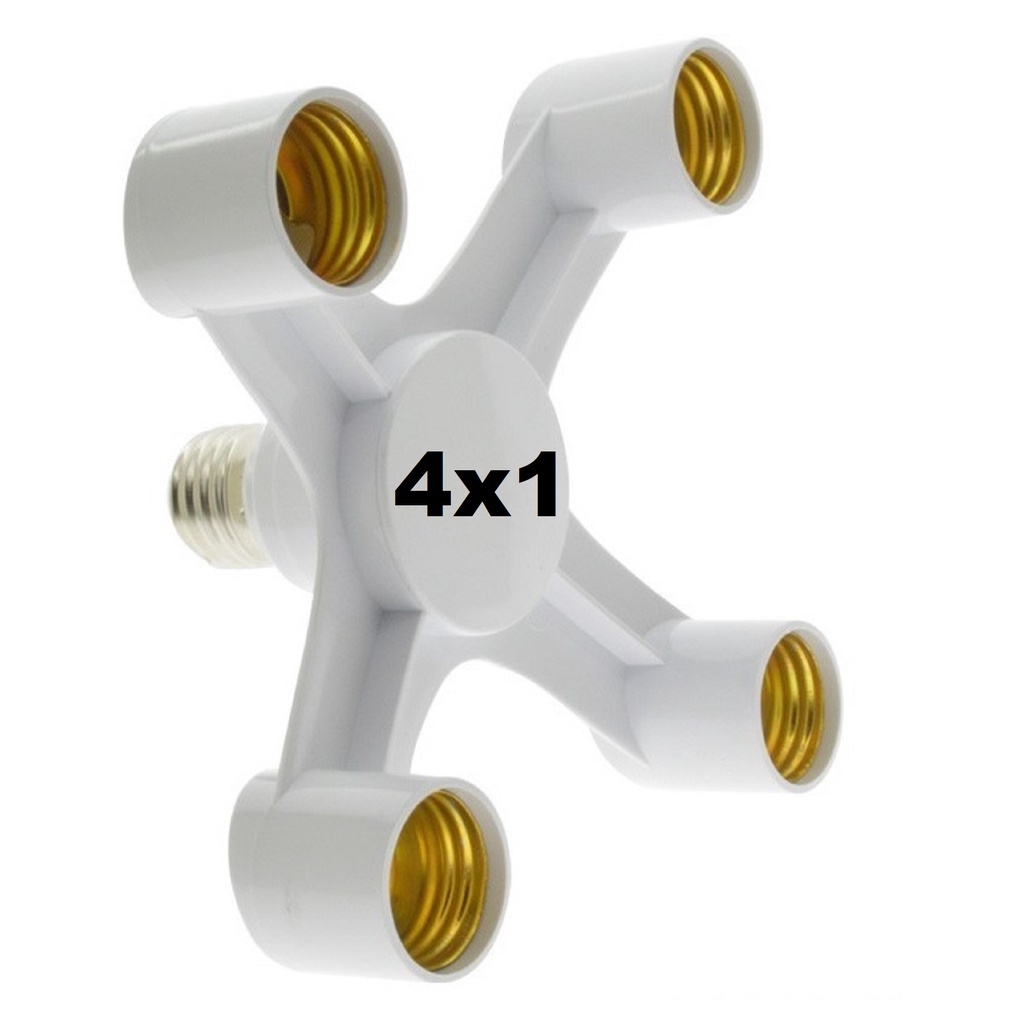 Prolongador Adaptador Extensor Soquete Bocal Lâmpada E27 - 4 Lâmpadas - 4x1 - 4 em 1 - Multiplo - Quadruplo