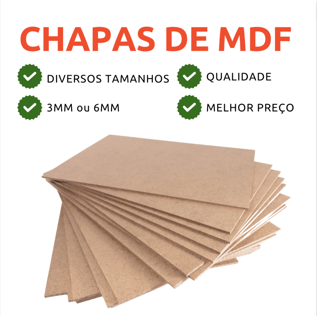 Placa/Chapa De MDF Cru 6MM - Diversos Tamanhos - Sublimação, Artesanato, Casa, Prateleira, Quadro