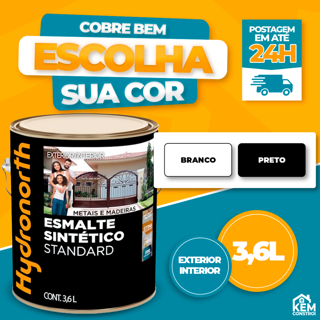 Tinta Esmalte Sintético Fosco 3,6L Metais e Madeiras Preto/Branco Hydronorth