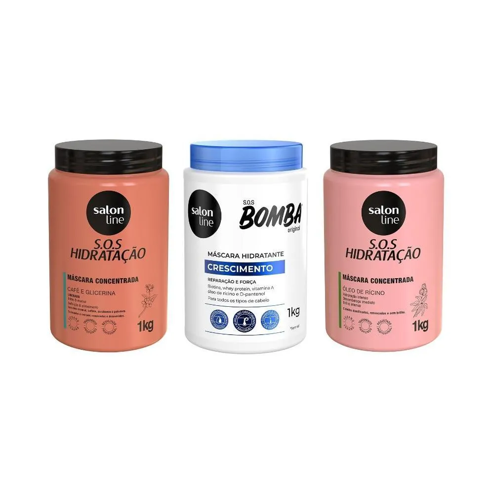 KIT COM 3 MáSCARAS DE HIDRATAçãO SALON LINE