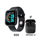 Relógio Smart Watch Digital D20 Masculino / Feminino + Fone Bluetooth Sem Fio i12