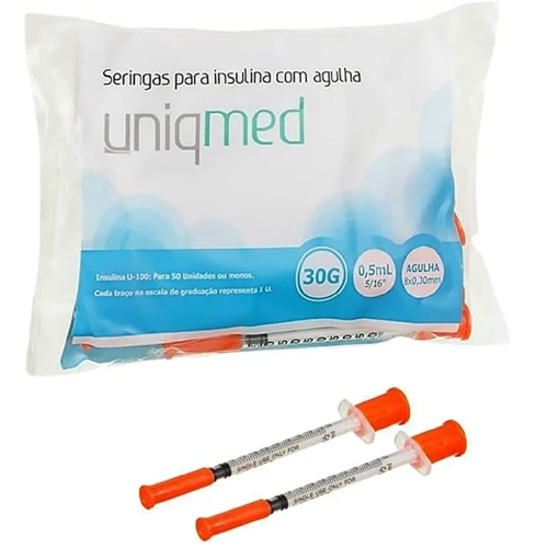 Seringa Insulina Uniqmed 0,5ml 8x0,30mm 30G - 10 seringas