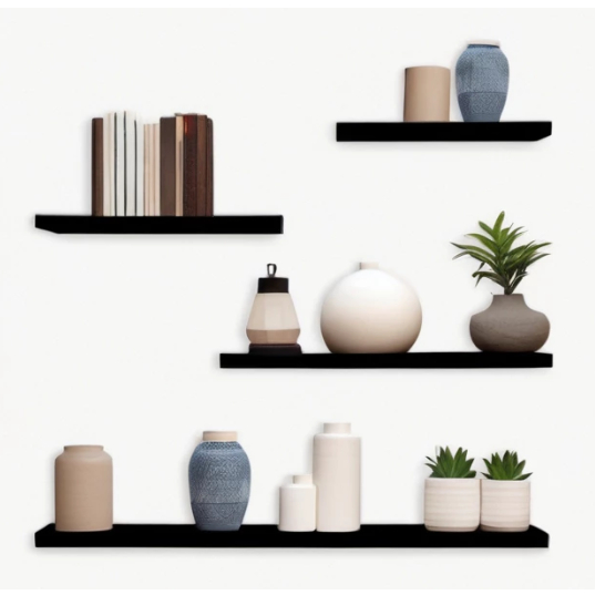 Kit 4 Prateleiras 20/30/40/50 Nicho MDF Preto Suporte Decoração Sala Quarto Cozinha Banheiro