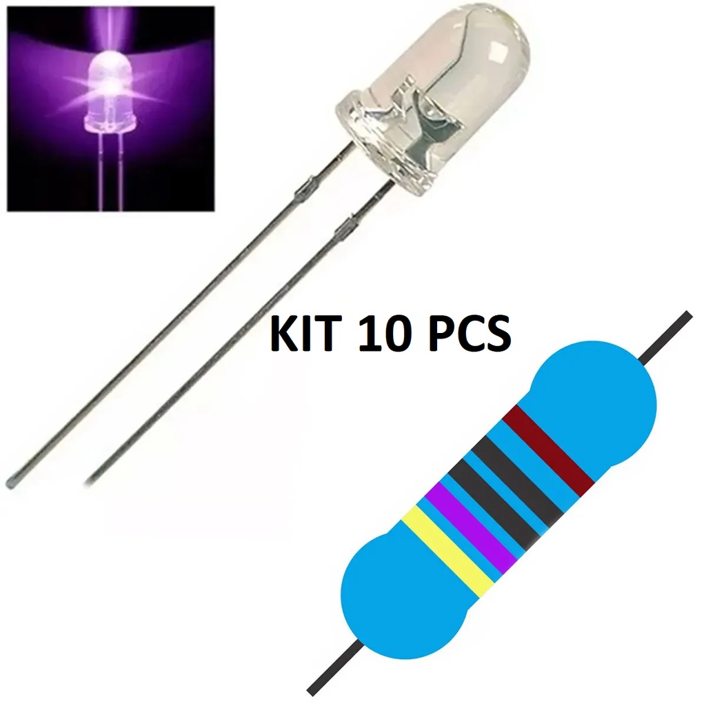 Kit 10 Led Uv(ultra Violeta) 5mm + 10 Resistores 470 R