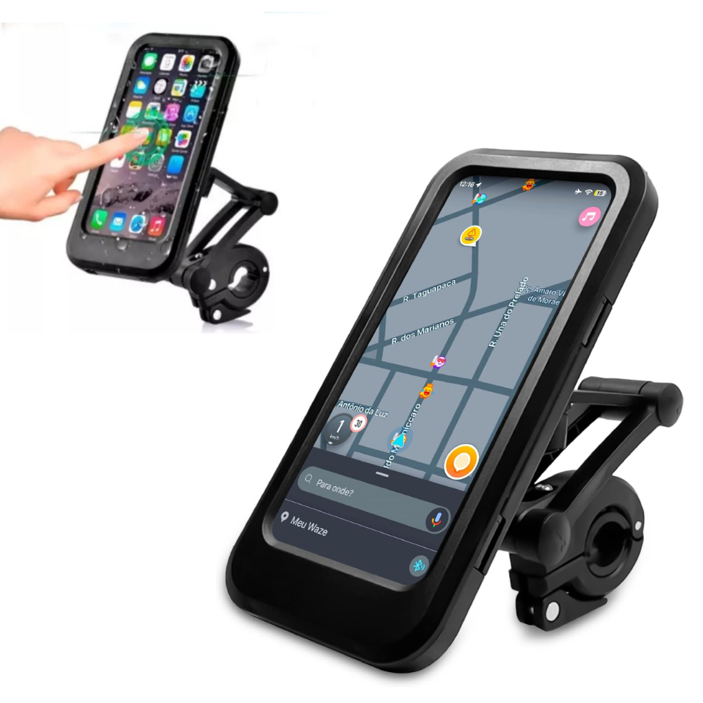 Suporte de Celular para Moto Impermeável a Prova Dagua Universal Iphone Galaxy Moto Retrovisor Guidão Ajustável