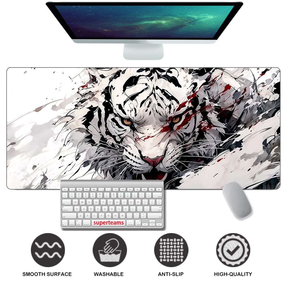 Besta Mítica/Tapete De Rato Tigre Branco Plus Tamanho Mouse Pad Jogo Mesa Grande Base De Borracha Antiderrapante À Prova D'água E Durável Para Computador