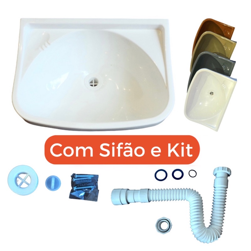 Pia Lavatório de Banheiro com Sifão e Kit de Instalação e Ralo Cuba Plástico 26 x 36cm Sifão