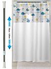 Kit Varão + Cortina Box Banheiro - Varao Extensivel 70 ate 120cm Metal e Cortina de Box Vinil Peixes com Visor - PANAMI
