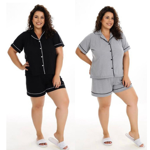 KIT 2 Baby Doll FB Plus Size Bloguerinha Malha Premium Americano Pijama Aberto Com Botões Promoçao G1 G2 G3
