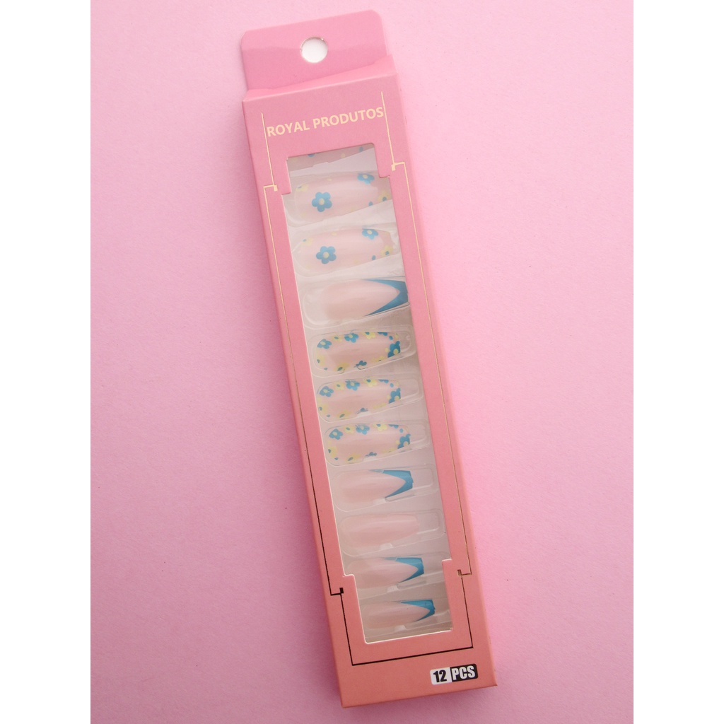 Unhas Postiças Impala Francesinha e decoradas 12/25 unidades para Mão + cola e Lixa