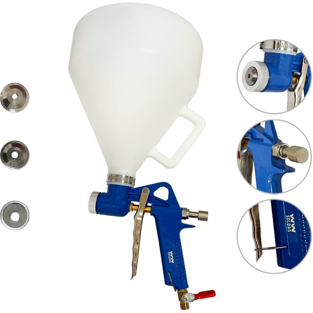 Pistola De Textura Chapisco Grafiatos Com 3 Bicos 4mm / 6mm / 8mm E Funil 5 Litros Tp-5000 Profissional Wwsoldas