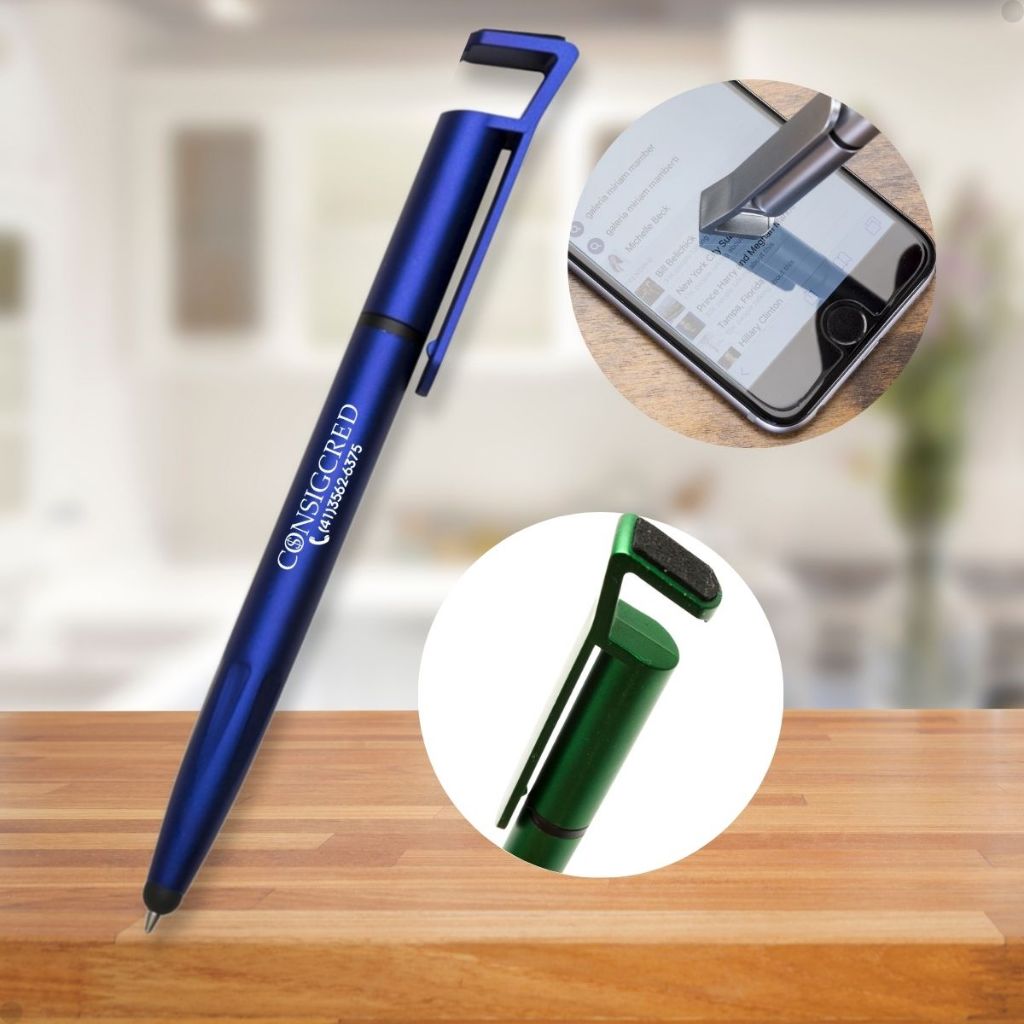 Kit 50 Caneta Plástica Personalizada Touch com Suporte Celular e Limpa Tela Esferográfica Sua Logo