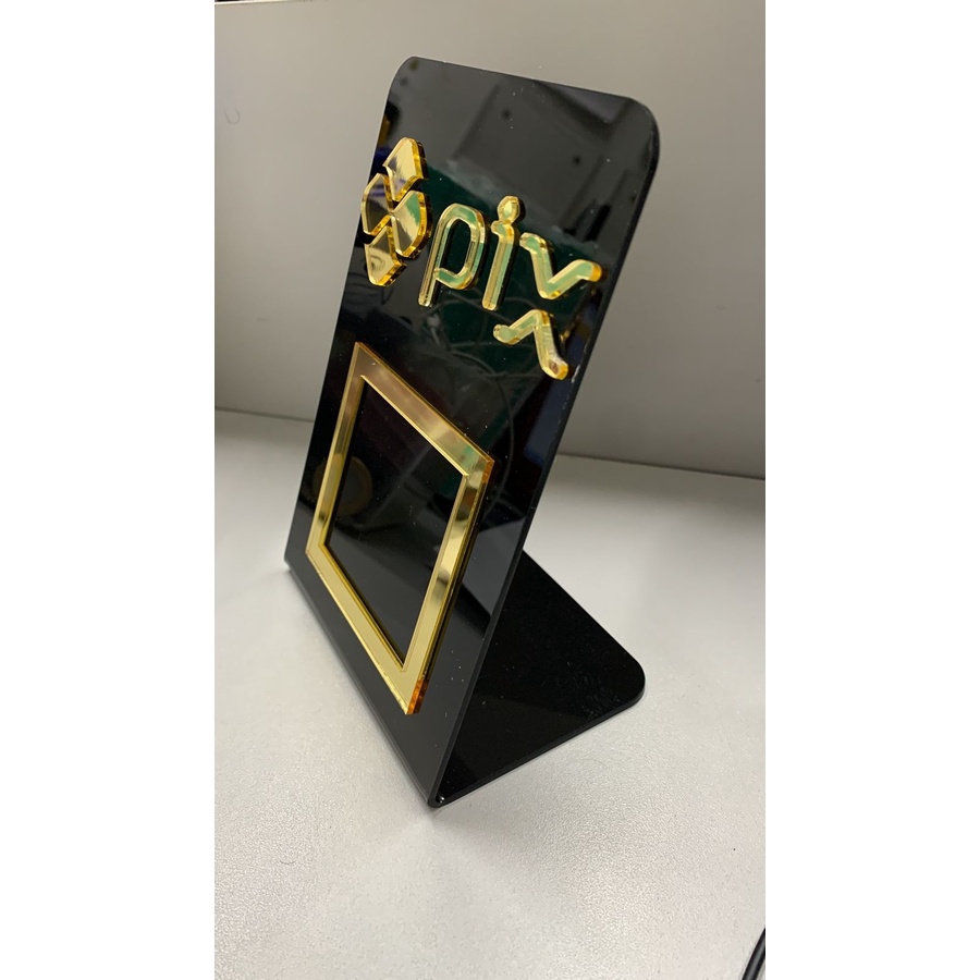 Placa Pix Display em Acrílico Mesa Balcão QR Code PIX Pagamento Para Loja