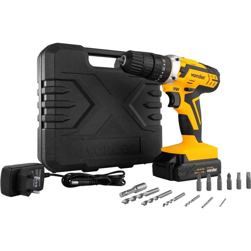 Furadeira Parafusadeira de impacto 3/8" a bateria 20V com 2 baterias + acessórios - PFV 020I Vonder