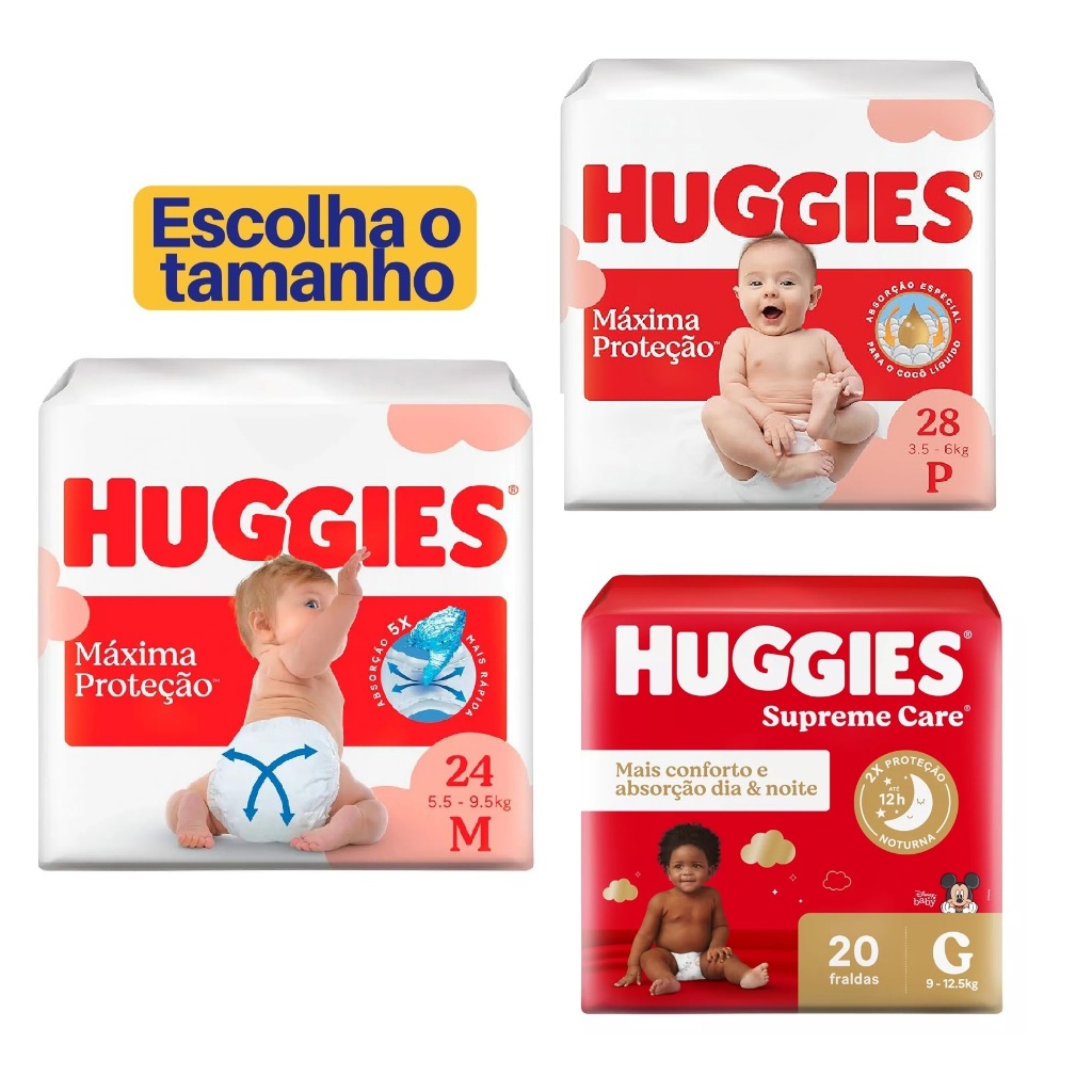 Fralda Huggies Supreme Care / Máxima Proteção | P | M | G | XG | XXG